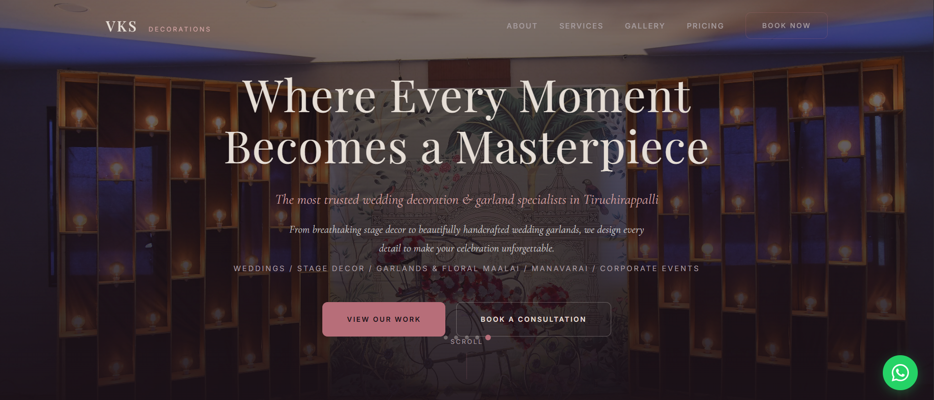 VKS Flower Shop & Wedding Decor in Trichy specializes in traditional and contemporary wedding garlands, custom bouquets, and full event floral decoration services.